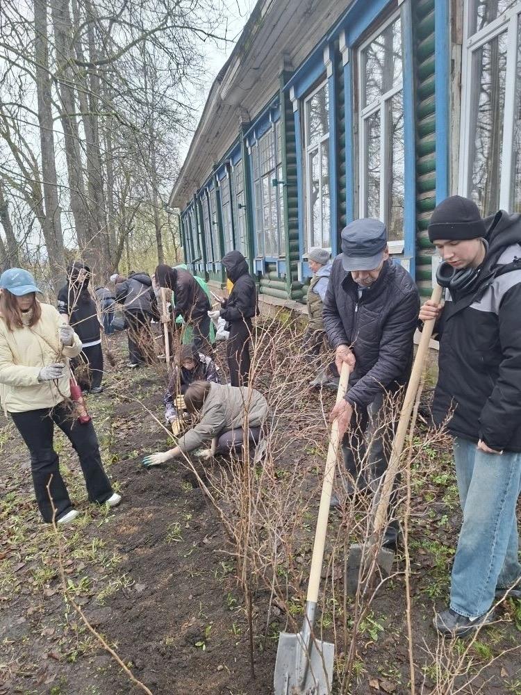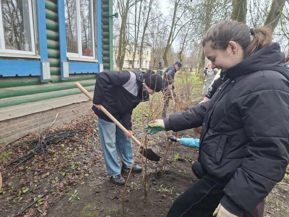 Студенты Великосельского аграрного колледжа, будущие ландшафтные дизайнеры, вышли на практику не в аудитории, а на настоящую городскую территорию — к Музею льняной мануфактуры.